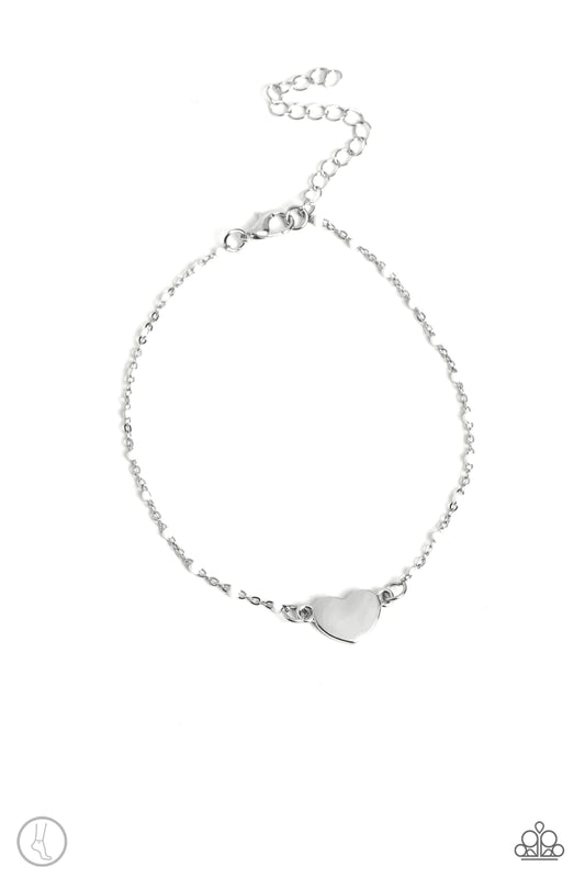 Sunbather Serenade - White Bead Silver Heart Anklet