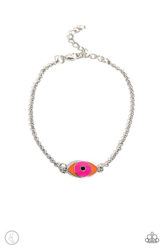 SEA You Later - Multi Pink and Orange Eye Silver Anklet