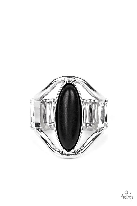 Sonoran Soul Searcher - Black Oval Crackle Stone Silver Cuff Bracelet