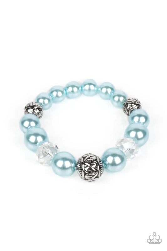 Royal Reward - Blue Pearl Clear Crystal Silver Accent Stretchy Bracelet