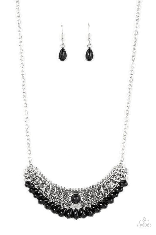 Abundantly Aztec - Black Bead Silver Short Necklace