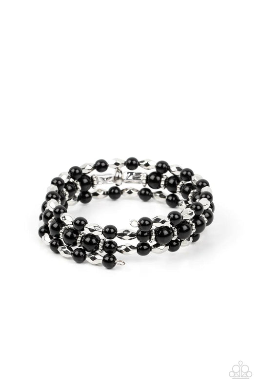 Colorfully Coiled - Black and Silver Bead Coil Bracelet