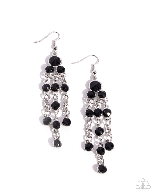 Cascading Clarity - Black Rhinestone Silver Fringe Fishhook Earrings