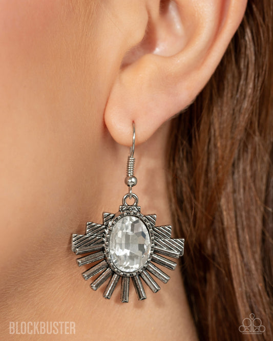 Miss YOU-niverse - Silver Gems Fringe Fanning Frames White Rhinestones Short Necklace - Blockbuster