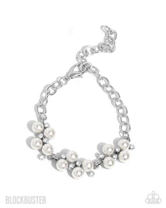 Old Hollywood - White Rhinestone Silver Blockbuster Clasp Bracelet - Blockbuster