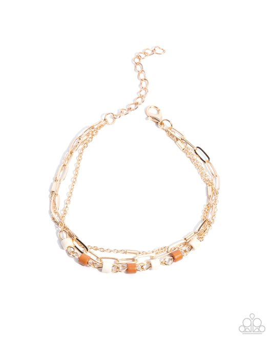Badlands Blend - Brown Stone White Discs Gold Clasp Bracelet