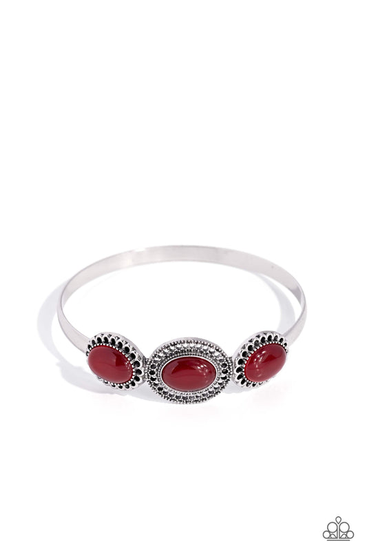 A DAYDREAM Come True - Red Cat's Eye Oval Silver Bangle Bracelet