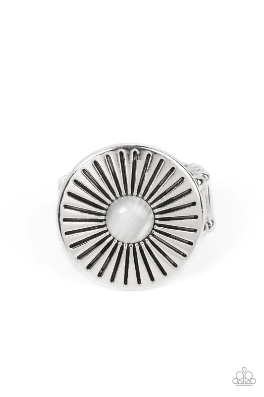 Everglade Eden - White Cat's Eye Silver Floral Ring
