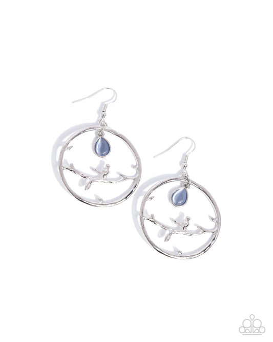 Picturesque Scene - Blue Cat's Eye Bird Silver Earrings