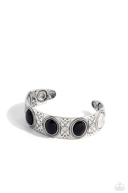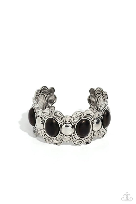 Sandstone Serenade - Black Stone Silver Cuff Bracelet