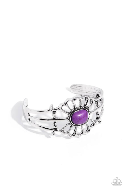 Natural Need - Purple Crackle Stone Silver Cuff Bracelet