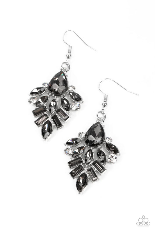 Stellar-escent Elegance - Silver Smoky Gem Fishhook Earrings