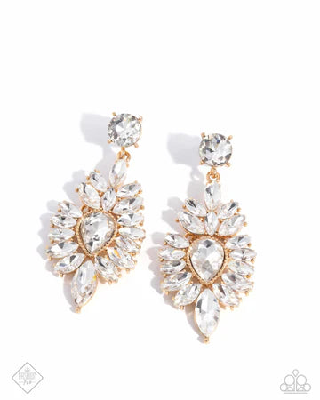 Darling Direction - Gold White Rhinestone Post Earrings - Fashion Fix