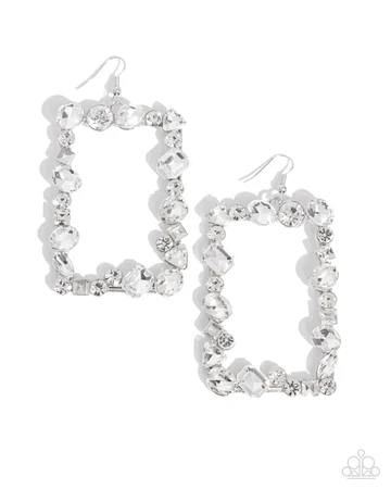 Wishful Wardrobe - White Rectangle Frame White Gem Silver Fishhook Earrings - 2024 Convention Exclusive