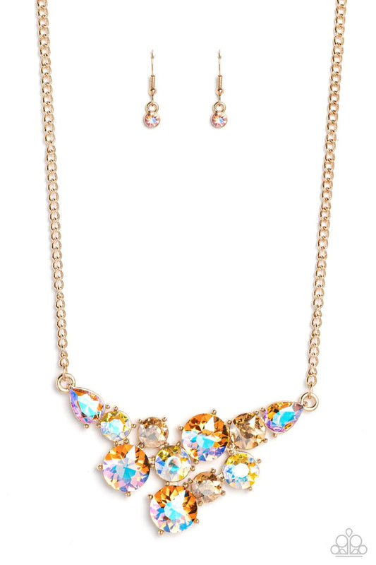 Round Royalty - Gold Iridescent Gem Short Necklace