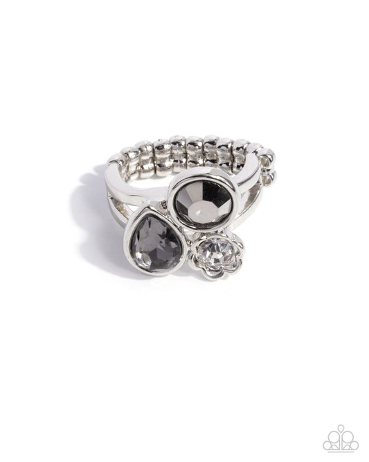 Capricious Cluster - Silver Hematite Smokey Rhinestone Ring