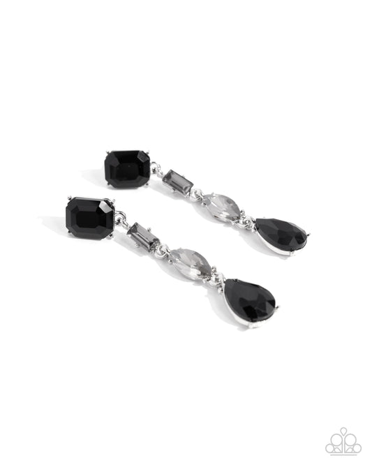 PERFECT MATCH / SET: Gallery Gala - Black and Smoky Gem Pendant Silver Short Necklace and Cascading Class - Black and Smoky Gem Post Earrings