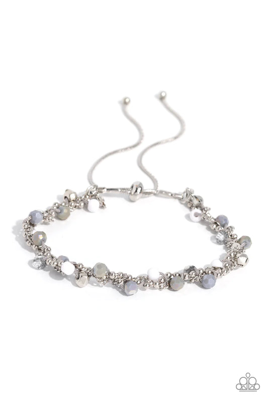 Show-Stopping Sass - Silver Gray, White, and Clear Seed Bead Gray Pull Cord Slide Bracelet