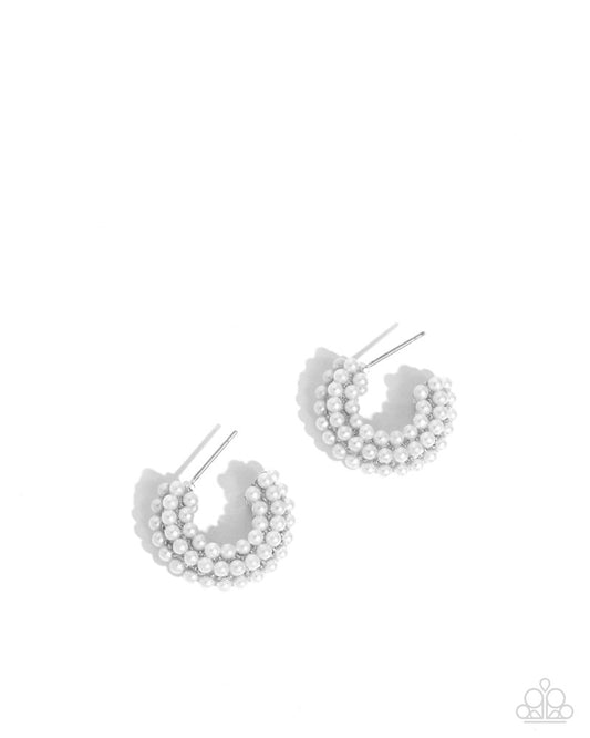 Divine Decoding - White Rhinestone Silver Post Hoop Earrings