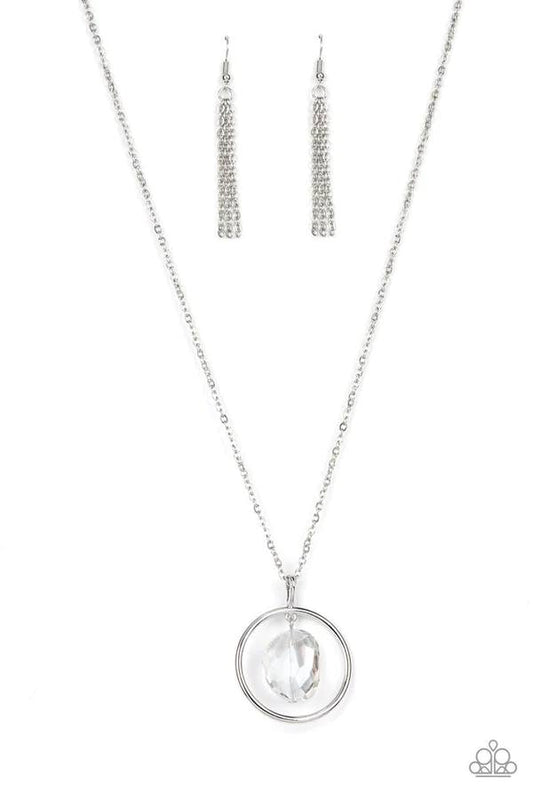 Hands-Down Dazzling - White Iridescent Gem Silver Circle Long Necklace