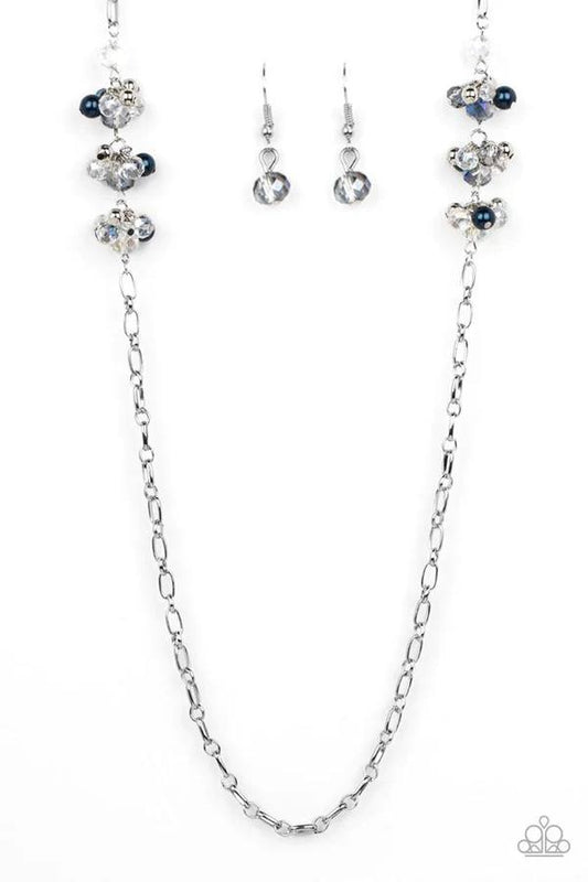 Poshly Parisian - Blue Pearl and Iridescent Crystal Bead Cluster Silver Necklace