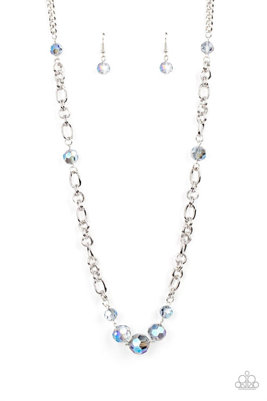 Prismatic Pick-Me-Up - Multi Oil Spill Iridescent Crystal Silver Long Necklace