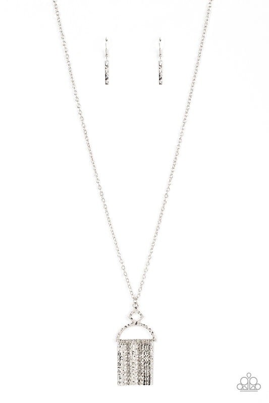 Getting the Hang of Things - Silver Bar Fringe Long Necklace