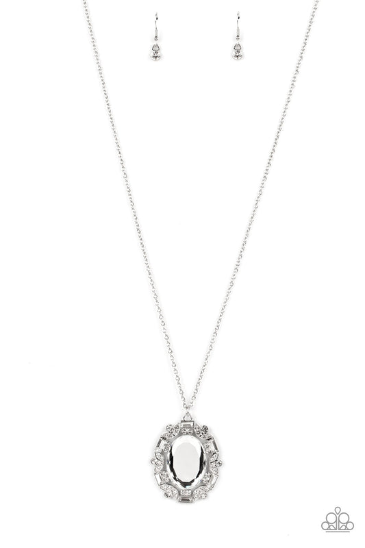 Chicly Centered - White Rhinestone Silver Circle Pendant Long Necklace