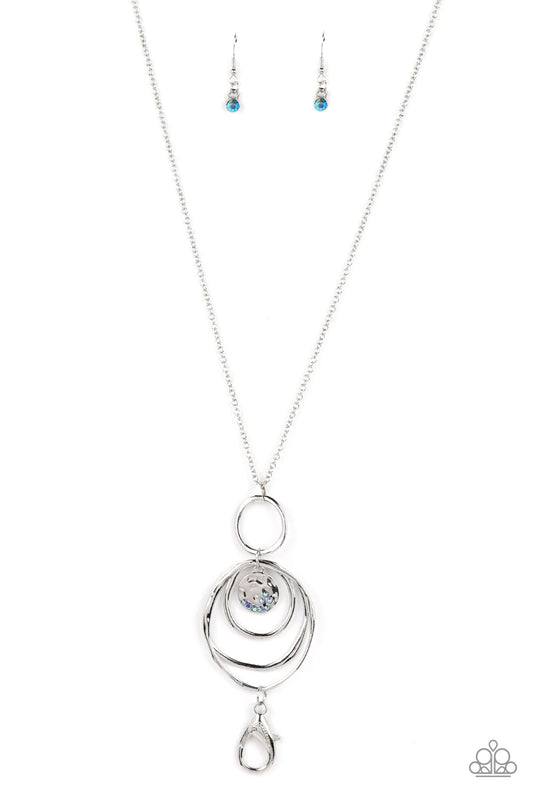 Mermaid Maestoso - Blue Iridescent Rhinestones Silver Circle Lanyard Medium-Length Necklace