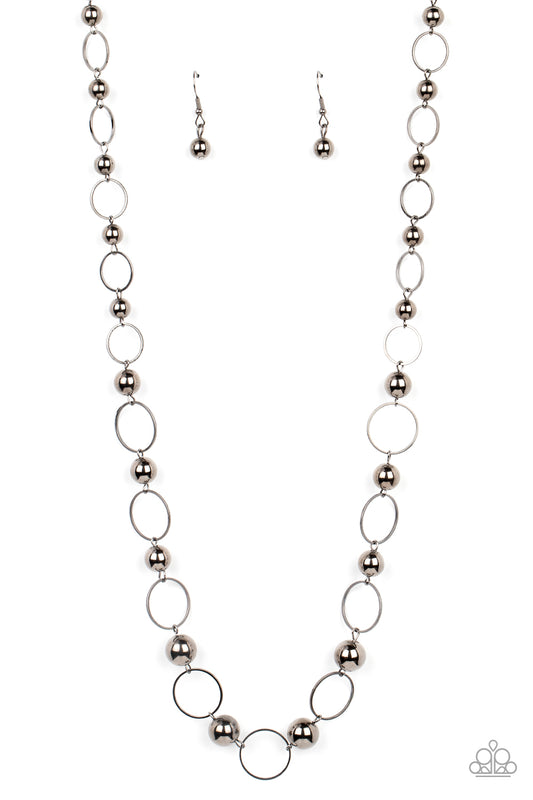 Metro Milestone - Black Gunmetal Round Bead Medium-Length Necklace