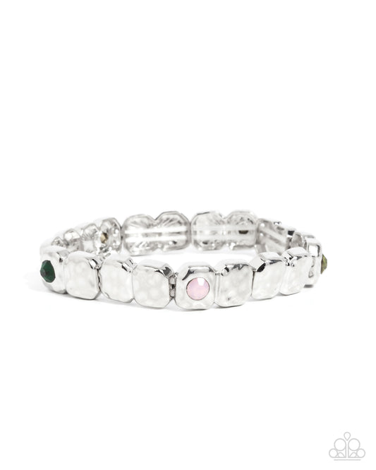 Faint-Hearted Fashion - Green Iridescent Multi Color Bead Silver Stretchy Bracelet