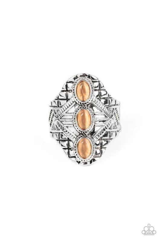 Eye-Catching Cats Eye - Orange Stone Silver Ring