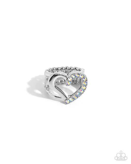 Abstract Attraction - White Iridescent Rhinestone Silver Heart Ring