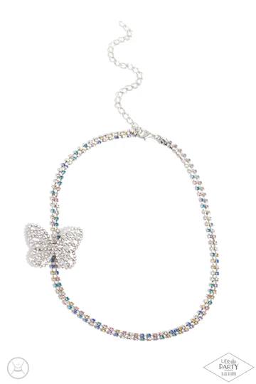 Flying Fantasy - Multi Color Iridescent Rhinestone Silver Butterfly Choker Necklace - Life of the Party Black Diamond Exclusive