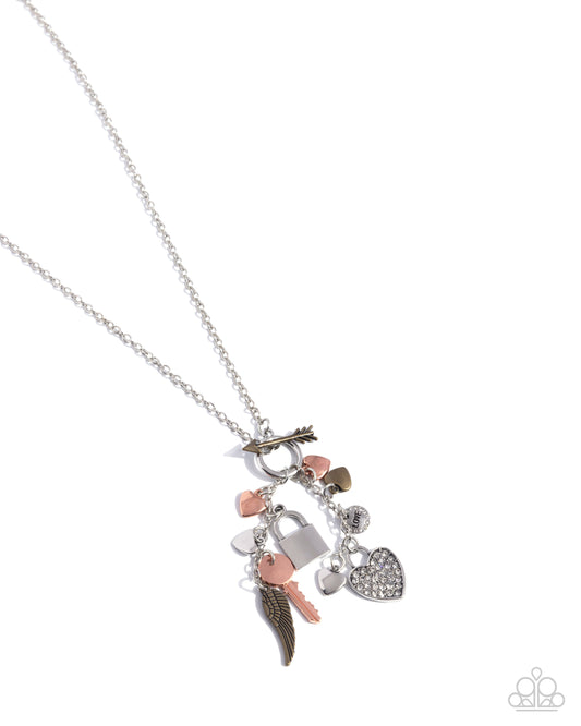 Valentines Venture - Multi Mixed Metal Silver Copper Brass Heart Key Lock Charm Toggle Medium-Length Necklace