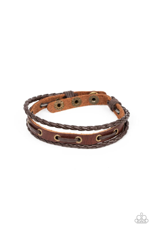 Road Cruise - Brass Brown Leather Urban Wrap Bracelet