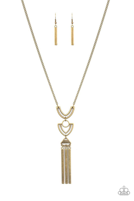 Confidently Cleopatra - Brass Geometric Frame Medium-Length Necklace