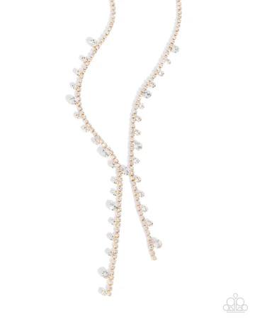 Glittery Getaway - Gold White Rhinestone Y Short Necklace - Meet Your Match Exclusive