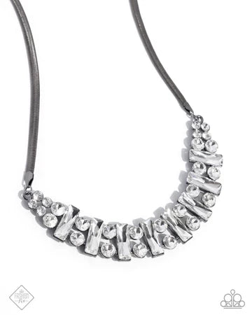 Adorably Assertive - Black Gunmetal White Gem Short Necklace - Fashion Fix