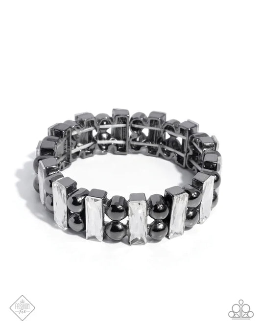 Assertive Admiration - Black Gunmetal White Gem Stretchy Bracelet - Fashion Fix