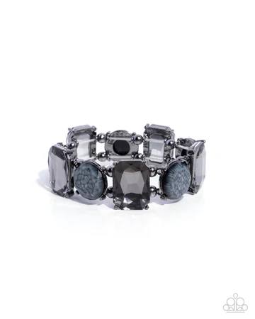 Cloudy Conversation - Black Smoky Gem Gunmetal Stretchy Bracelet - 2024 Convention Exclusive