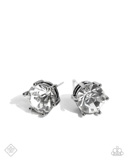 Forceful Facets - Black Gunmetal White Gem Post Earrings - Fashion Fix