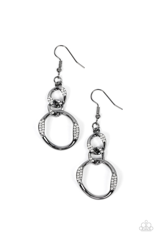GLOWING off the Deep End - Black Gunmetal White Rhinestone Fishhook Earrings