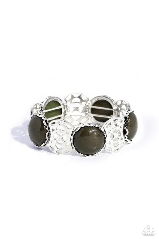 Ethereal Excursion - Green Bead Silver Stretchy Bracelet