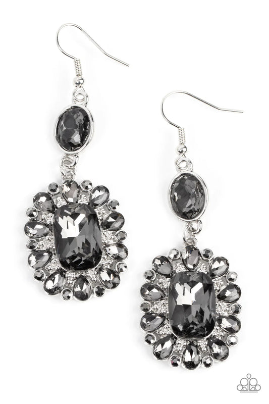 Capriciously Cosmopolitan - Silver Smoky Gem Hematite Rhinestone Fishhook Earrings