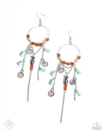 Commanding Cascade - Blue Turquoise Orange Silver Circle Fishhook Earrings - Fashion Fix
