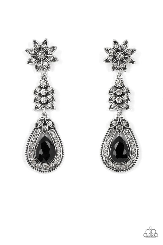 Floral Fantasy - Black Rhinestone Silver Post Earrings