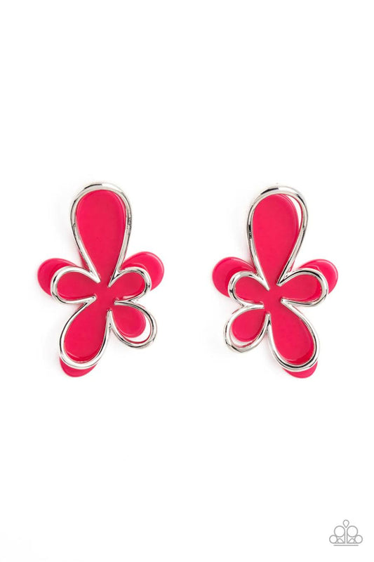 Glimmering Gardens - Pink Acrylic and Silver Flower Post Earrings