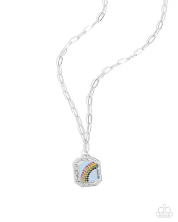 Rainbow Reputation - Blue Rhinestone Rainbow Silver Short Necklace - Meet Your Match Exclusive