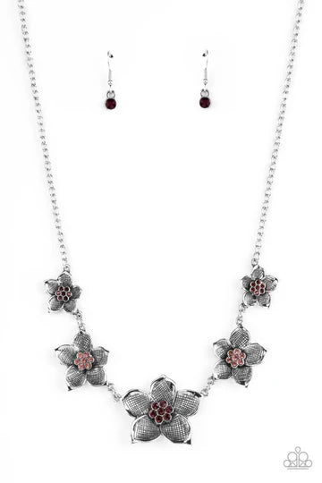 Wallflower Wonderland - Purple Rhinestone Silver Flower Short Necklace